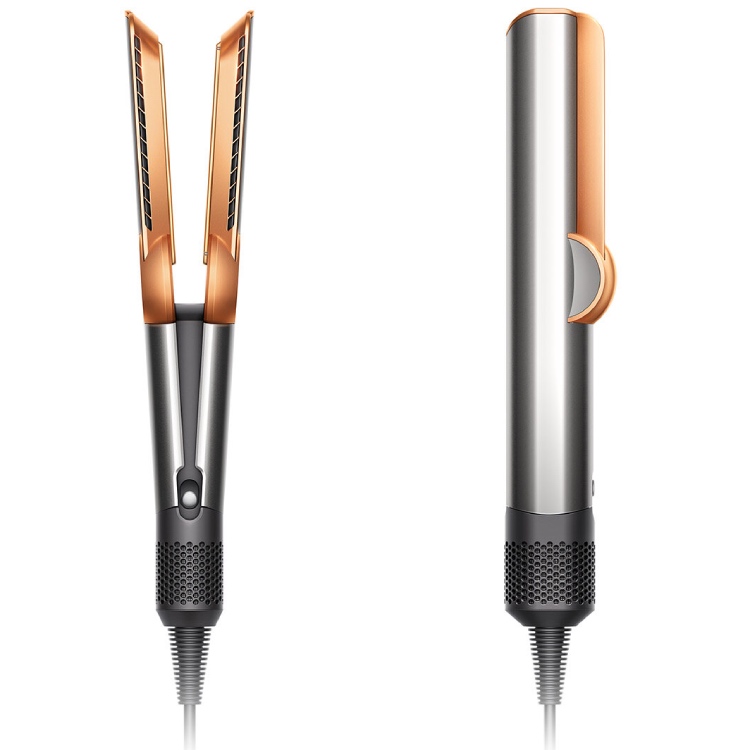 Новинка была представлена на рынке в 2023 и удивила пользователей методом выпрямления и интеллектуальными функциями. Поток воздуха поступает под углом 45°, что создает определенное натяжение, необходимое для выравнивания прядей и гладкой укладки на тонких кончиках. Волосы не зажимаются между горячими пластинами – нагрев происходит за счет горячего воздуха.